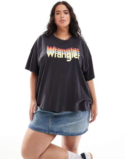 Wrangler Plus – Bleksvart t-shirt i girlfriend-modell med retrologga