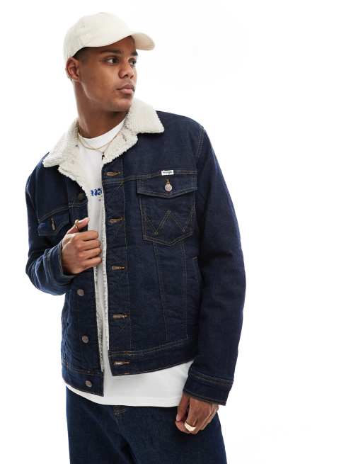 Wrangler – Mörkblå jacka med fårskinnsimitation