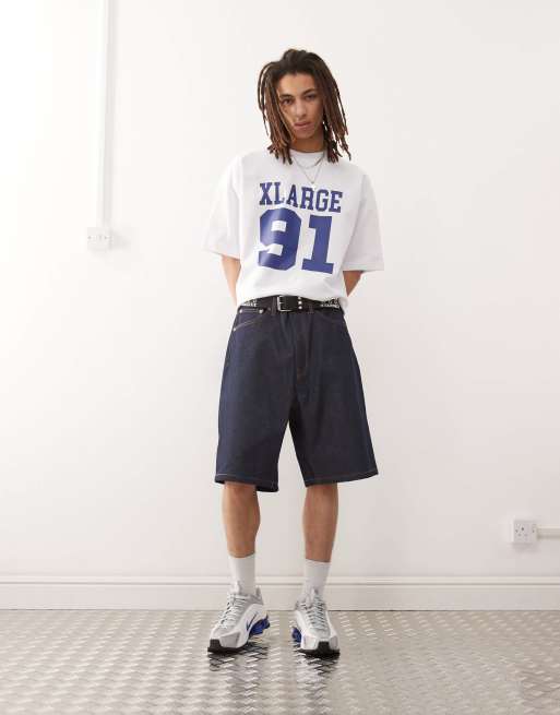 XLARGE – Sköljtvättade, långa jeansshorts i baggy-stil och broderad OG-logga på bakfickan