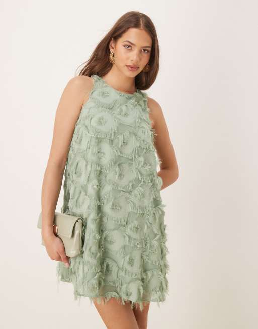 YAS – Grön, strukturerad miniklänning med brottarringning