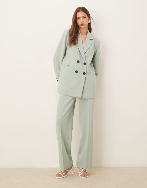 YAS – Grönt set i oversize med figursydd, dubbelknäppt kavaj och raka byxor med hög midja