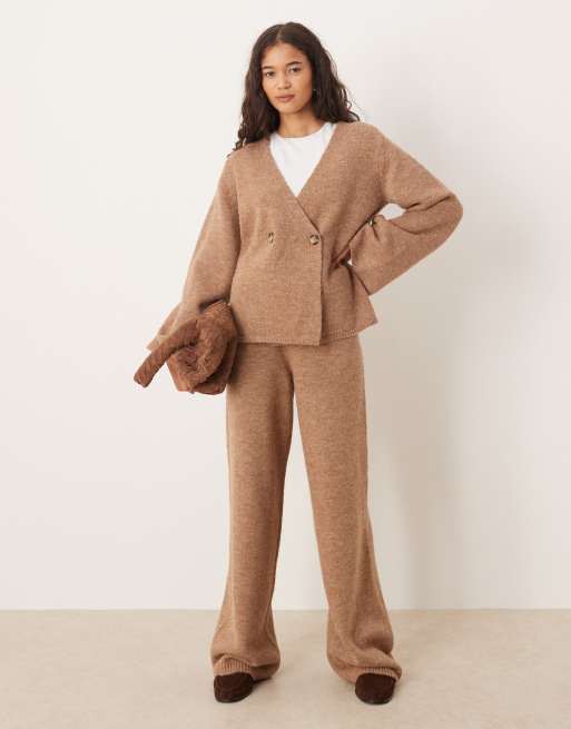 YAS – Kamelbrunt, stickat set med långärmad kofta och vida byxor