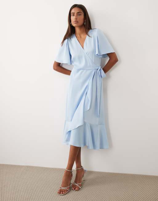 YAS – Ljusblå midiklänning i satin med smala axelband