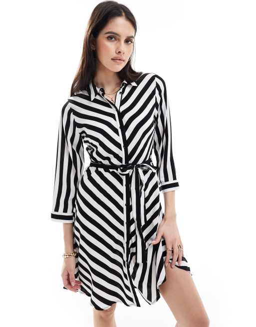 Y.A.S – Monokrom, bredrandig skjortklänning i minilängd