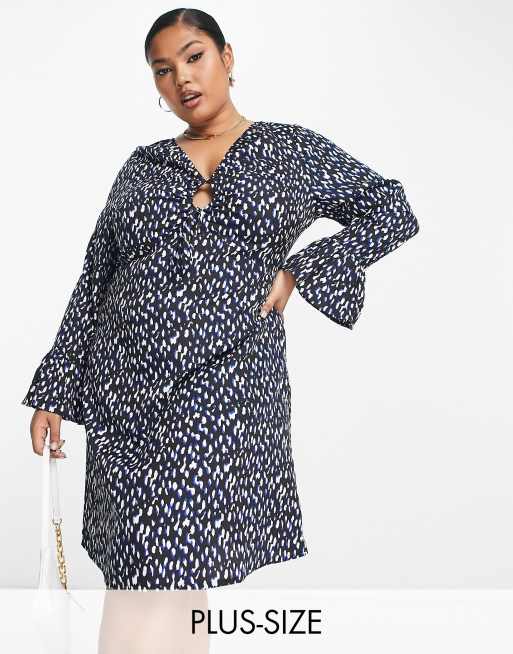 Yours – Exclusive – Blå och svart, prickig miniklänning med nyckelhålsöppning
