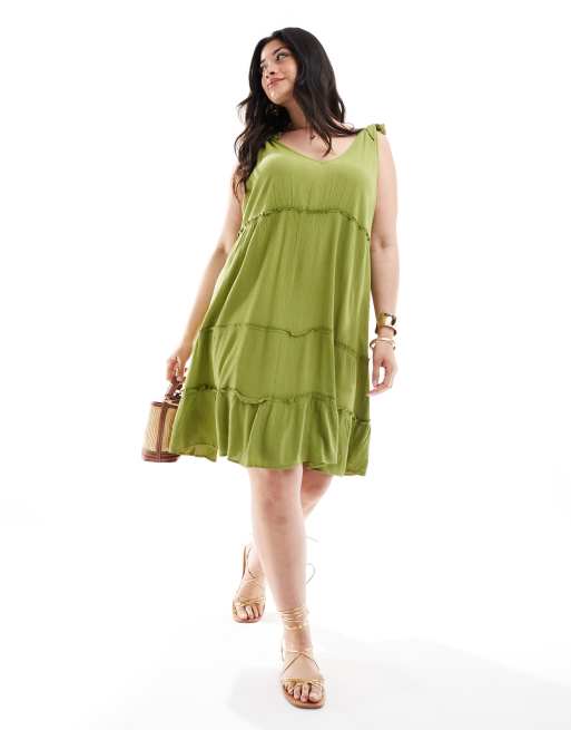 Yours – Grön panelsydd miniklänning med volang