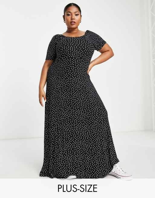 Yours – Svart, prickig maxiklänning med fyrkantig halsringning