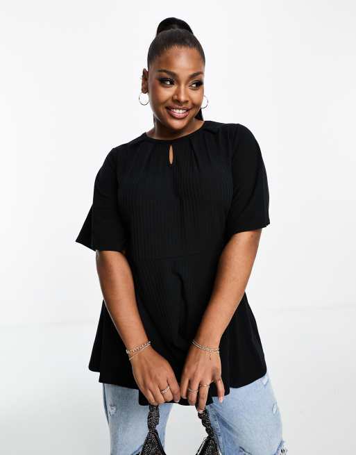 Yours – Svart ribbad topp med nyckelhålsöppning