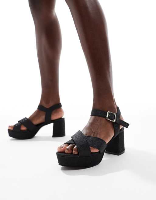 Yours – Svarta, glittriga skor med korsade remmar och blockklack