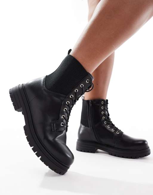 Yours – Svarta, grova ankelboots med snörning