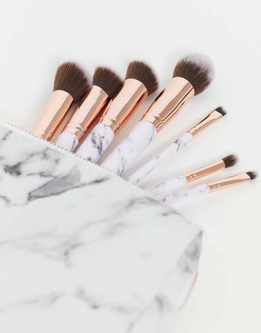 Zoe Ayla – Guldiga sminkborstar i 7-pack och påse av veganvänligt läder