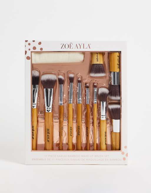 Zoe Ayla – Professional – Set med 11 sminkborstar av bambu i tygfodral