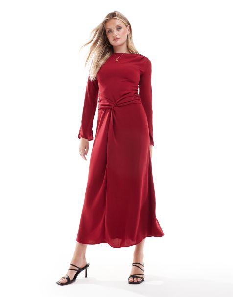 ASOS DESIGN pleated slash neck maxi dress with knotted back detail in red