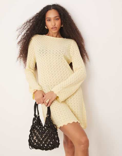 ASOS DESIGN flute sleeve poplin mix mini dress in buttermilk yellow- YELLOW