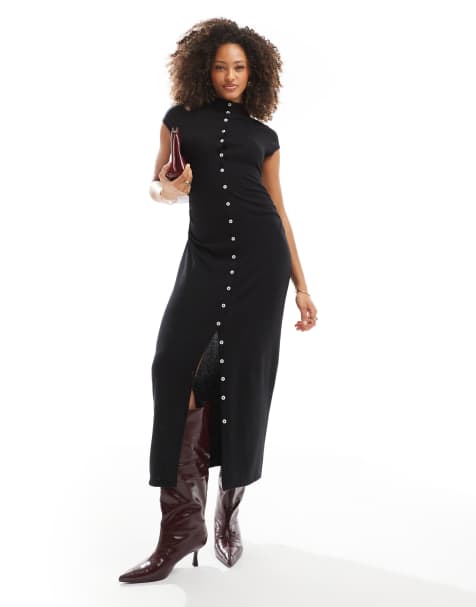 ASOS DESIGN ribbed grow on neck midi dress in black