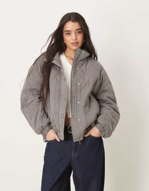 ASOS DESIGN Curve quilted bomber with yoke detail in olive