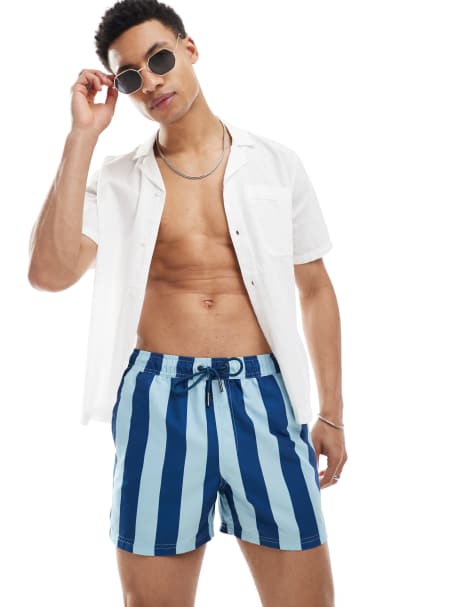 ASOS DESIGN swim shorts in super short length in blue stripe