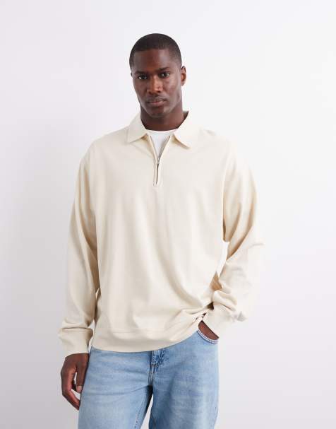 JJ Rebel half zip knitted polo jumper in beige