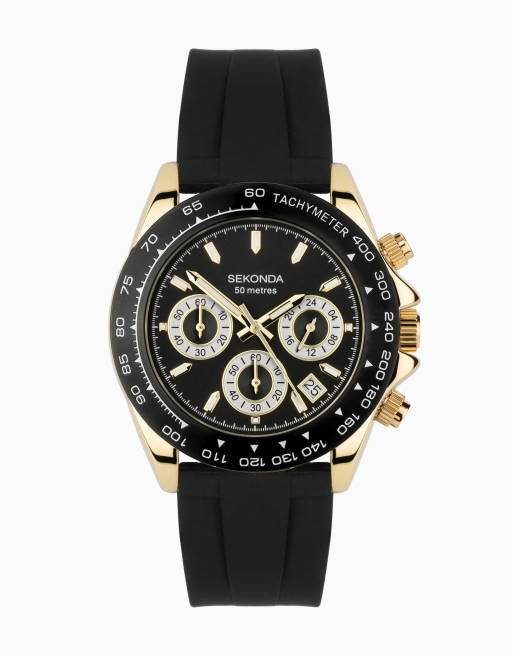 Sekonda Circuit Mens 39mm Analogue Watch With Gold Case And Silicone Strap With Black Dial