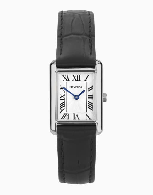 Sekonda Colette 22mm womens rectangular silver analogue watch in black