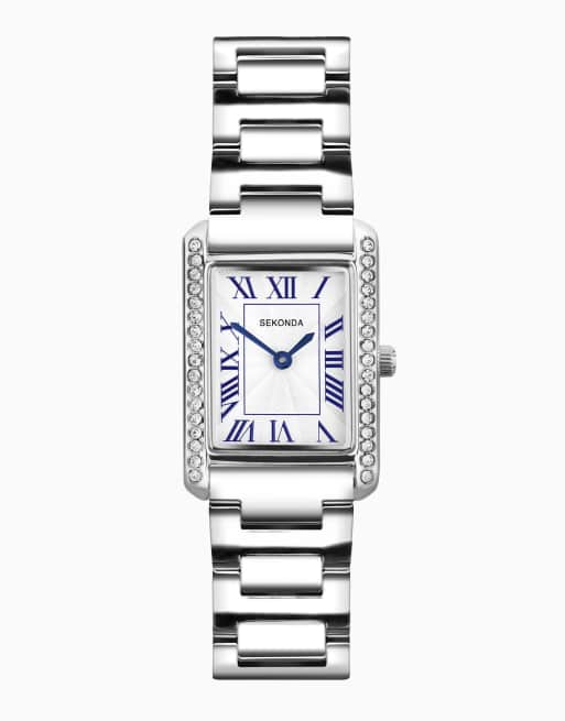Sekonda Colette 22mm womens rectangular silver analogue watch in silver