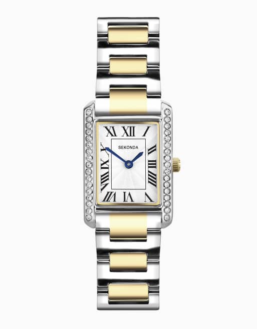 Sekonda Colette 22mm womens rectangular two tone analogue watch in silver