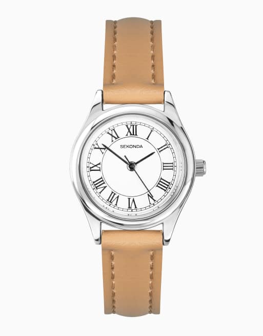 Sekonda Evans 25mm womens round silver analogue watch in brown