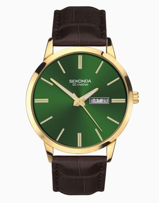 Sekonda jackson 40mm round gold watch in green - DGREEN