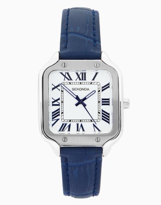 Sekonda Rene 29mm womens square silver analogue watch in blue