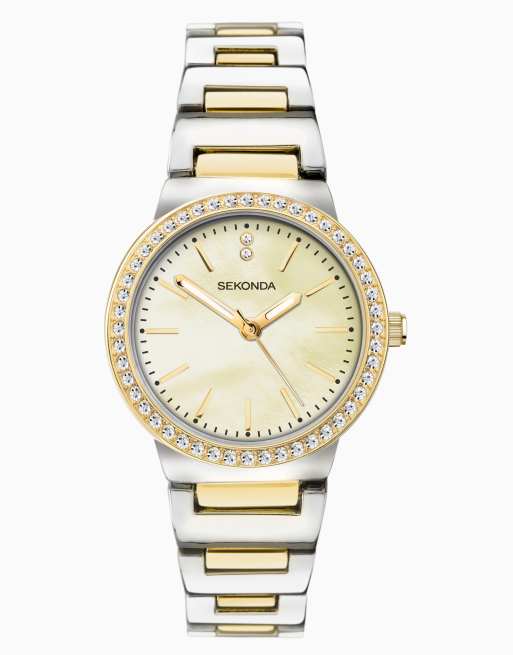 Sekonda Womens Amelia 28mm Analogue Watch with Two Tone Alloy Round Case, Two Tone Alloy Bracelet and Gold Dial