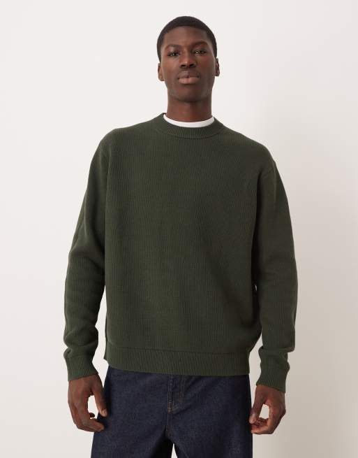 Selected 100% cotton boxy knitted jumper in dark green