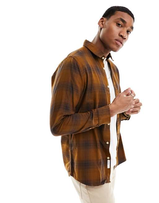 Selected check shirt in brown and navy