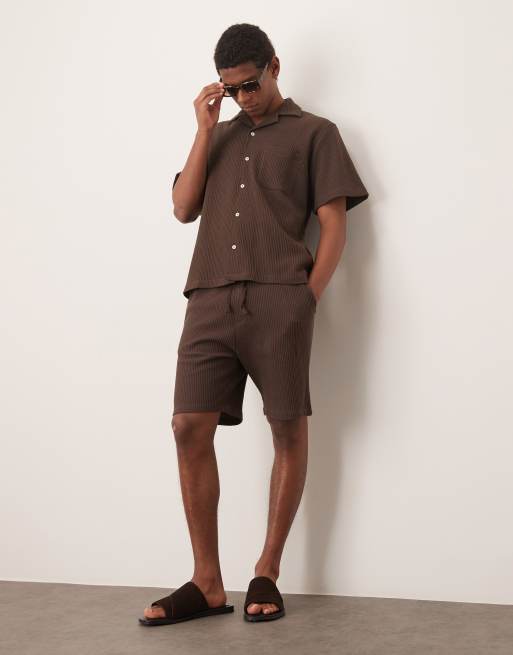 Selected co-ord waffle shorts in brown