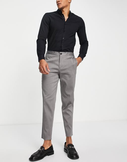 Selected cotton blend smart trousers in slim tapered fit with elasticated waist in grey