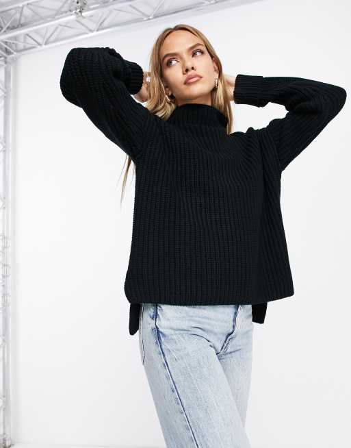Selected Femme knitted jumper with cuff turn up in black