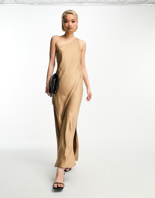 Selected Femme one shoulder satin midi dress in copper