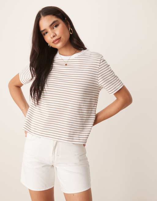 Selected Femme t-shirt in white greige stripe