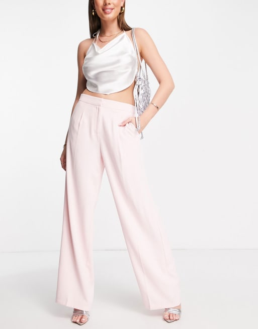 Selected Femme tailored blazer and wide leg trousers in pink