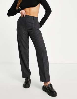 Selected Femme tailored suit trouser in wool mix grey pinstripe