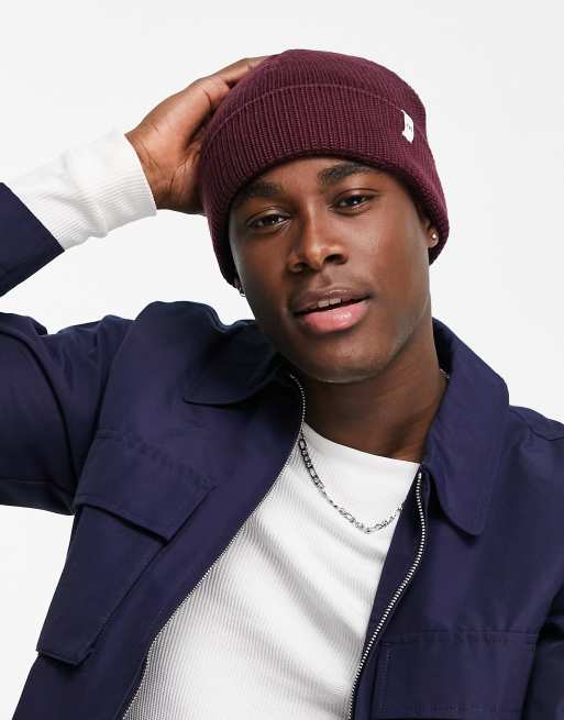 Selected Homme logo beanie in burgundy made from 100% polyester - BURGUNDY