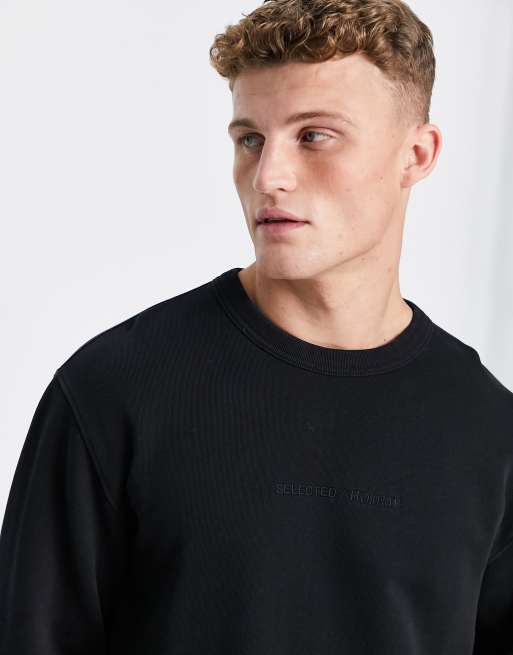 Selected Homme logo crew neck sweat in washed black