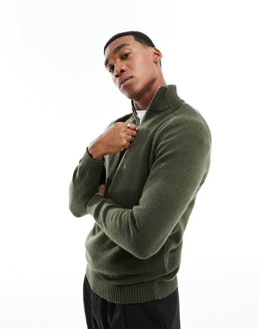 Selected Homme wool mix high neck 3/4 zip jumper in dark green