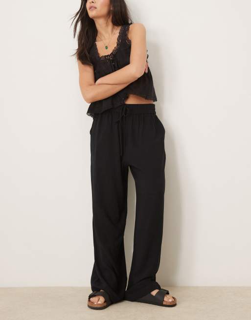 Selected linen trouser in black