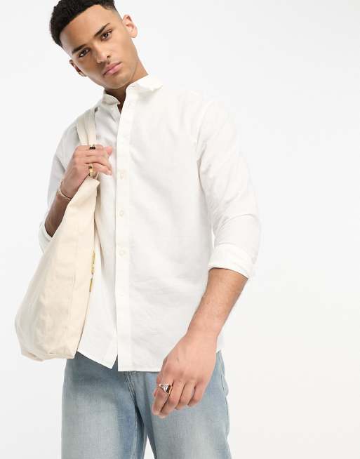 Selected long sleeve linen mix shirt in white