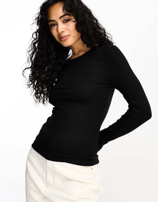 Selected long sleeve top in black