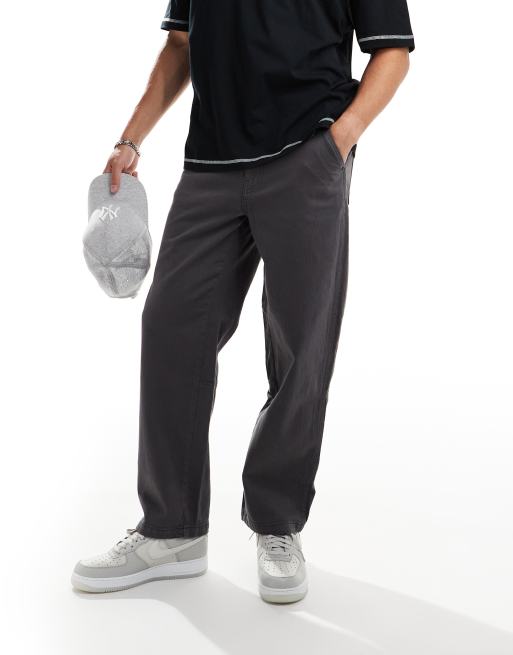 Selected loose fit carpenter trousers in dark grey