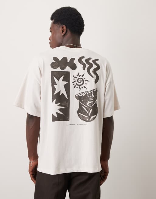 Selected oversized heavy weight t-shirt with art back print in off white