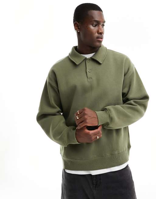 Selected oversized polo sweater in khaki