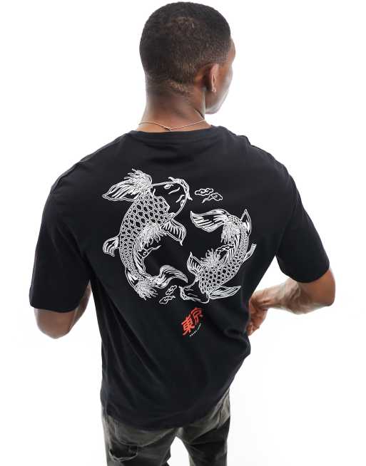 Selected oversized t-shirt with koi back print in black