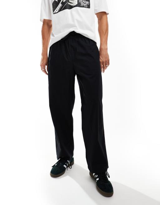 Selected poplin lightweight loose fit trousers in black